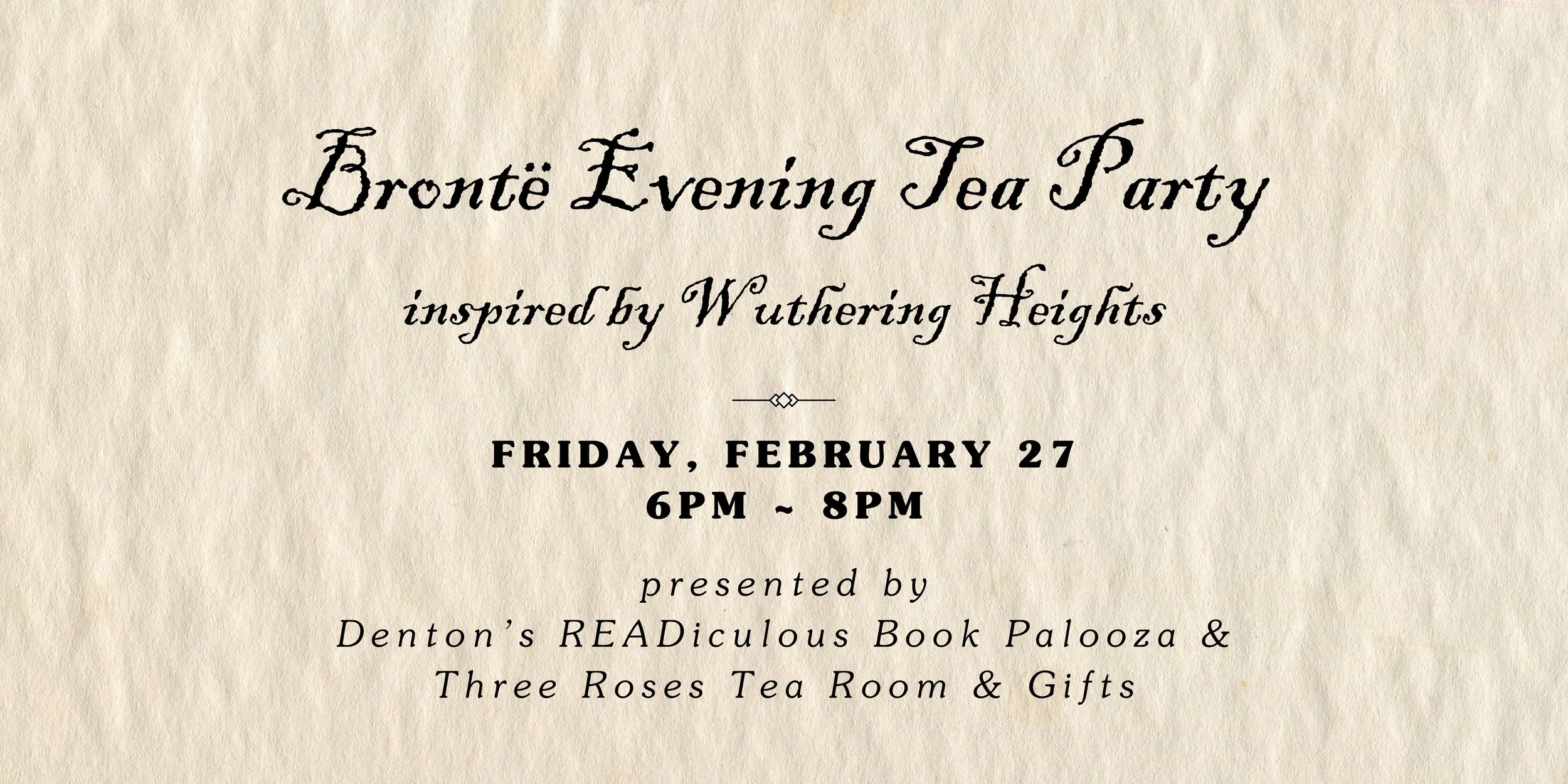 Lose yourself on the mist-shrouded moors at our Brontë Evening Tea Party hosted at Three Roses Tea Room. Inspired by Emily Brontë’s haunting novel, Wuthering Heights, this candlelit gathering invites guests into a world of passion, longing, and untamed beauty. Enjoy a thoughtfully curated candlelit evening tea featuring rich, evocative flavors and delicately crafted savories and sweets, served in an atmosphere steeped in gothic romance and 19th-century melancholy.